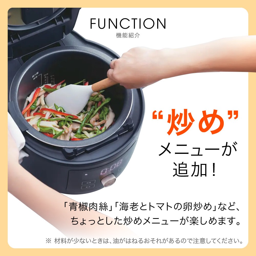 メニュー:うま圧 高速 スロー 低温 無水 発酵 ベイク 炊飯 茹で 温め 炒め