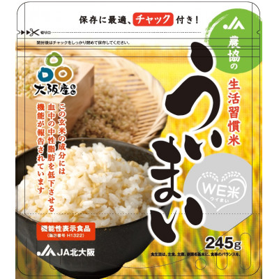 | 容量 | ■お礼品の内容について ・農協の生活習慣米ういまい (玄米)[245g×4袋] 原産地:大阪府摂津市 ■原材料・成分 大阪府産単一原料米 機能性表示食品(届出番号H1322) |