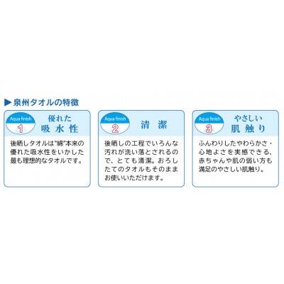 伝統と職人技が息づく泉州タオルは、独自の「後晒し製法」により、使い始めからふんわりと柔らかく、優れた吸水性を誇ります。洗うほどに肌になじみ、日々の暮らしに心地よさをプラスしてくれます。