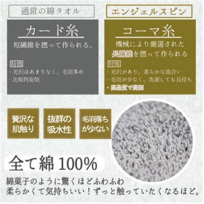 タオルの選ばれる条件である吸水性、肌触り、毛羽落ちの少なさを網羅した一品です。