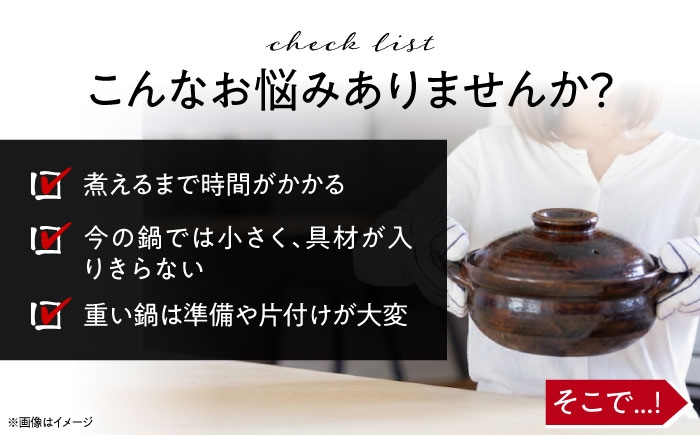 鍋のフチが外側に広くせり出した「フランジ付き」の設計です。お玉を使わずに麺類や具材を小鉢へ滑らせるように取り分けることができ、汁をこぼしにくいのが特徴です。機能性と使いやすさを兼ね備えた、鍋料理のための専用設計です。