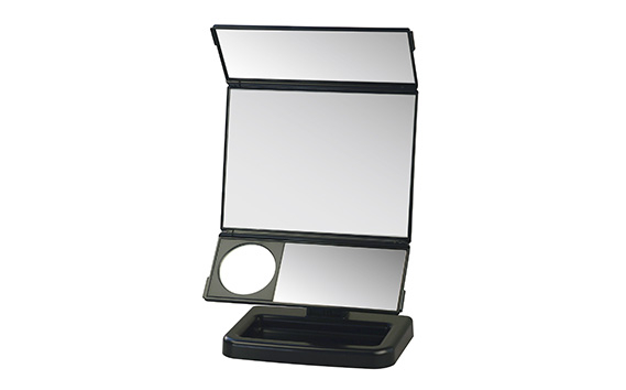 化粧鏡 卓上鏡 デスクミラー 3面鏡 角度調整 360度回転 縦横自在 拡大鏡付き 等倍 メイクアップ スキンケア 飛散防止 プラスチック 樹脂 軽量 持ち運び 折りたたみ 収納 省スペース 生活雑貨 インテリア雑貨 贈り物 大阪府 藤井寺市 贈答 ギフト プレゼント 人気 おすすめ 送料無料 お取り寄せ