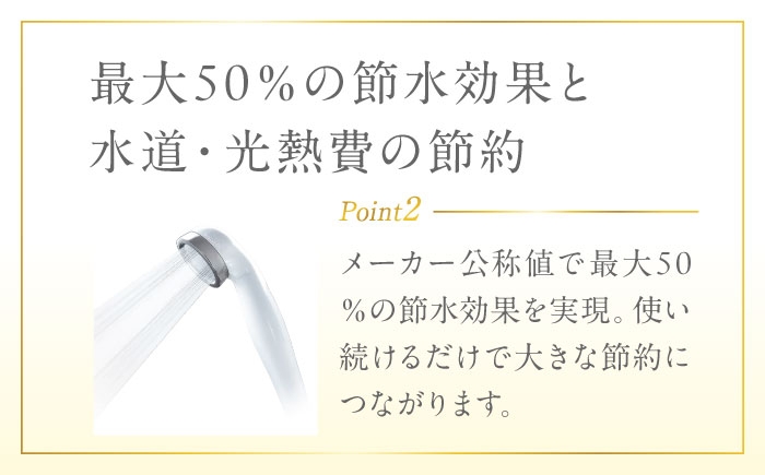 精密な散水板により、一般的なシャワーヘッドと比較して最大50%の節水効果(メーカー公称値)を実現しました。同時に、水の勢いを加速させる増圧機能も備えているため、少ない水量でも物足りなさを感じさせません。マンションの上層階など水圧が低い環境でも、快適な勢いを取り戻せます。