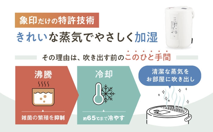 加湿器 家電 生活家電 季節家電 空調家電 乾燥対策 象印 象印マホービン ZOJIRUSHI 保湿 潤い 肌荒れ 風邪予防 ウイルス対策 花粉 室内 スチーム式 蒸気式 加熱式 静音 静か 衛生的 お手入れ簡単 掃除しやすい フィルター フィルターレス フィルター不要 転倒防止 チャイルドロック タイマー 寝室 リビング 子供部屋 オフィス 卓上 小型 ホワイト 白 おしゃれ シンプル コンパクト 新生活 日用品 快適 6畳 8畳 10畳 13畳 大容量 贈答 ギフト プレゼント 人気 おすすめ