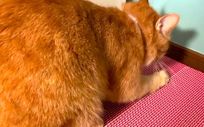 一般的な段ボール製の爪とぎに比べて、研ぐ際の「研ぎカス(紙の粉)」が出にくいのが大きな特徴です。猫ちゃんが思い切り爪を研いでも周囲が汚れにくく、飼い主様の日々のお掃除の手間を軽減します。