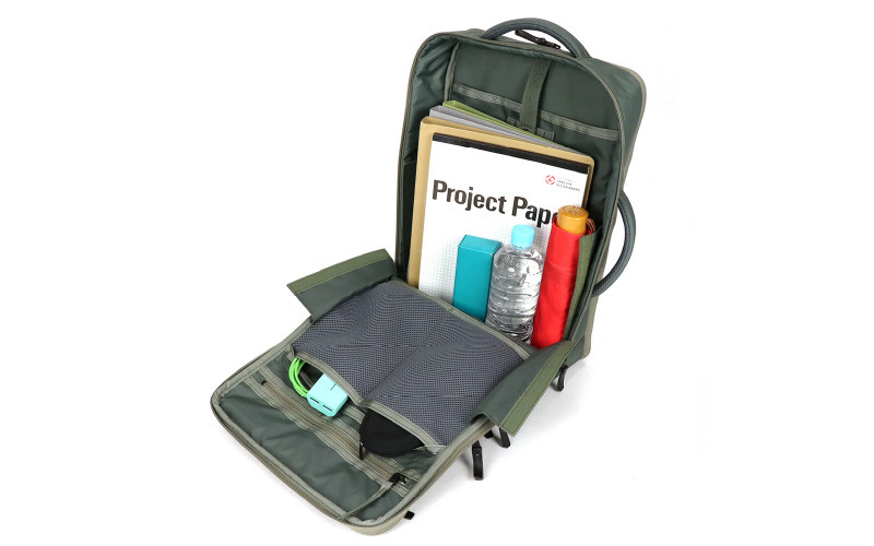 本体構造は3層式になっており、それぞれの内部にはインナーポケットを備えております。