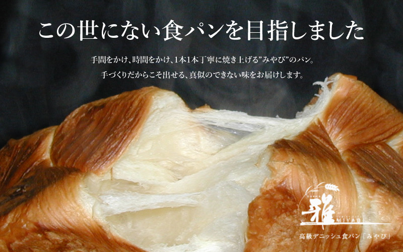 自然の甘み、柔かい食感…食の安全を考え、厳選された素材でみやび職人たちが時間をかけ丁寧に焼き上げる最高級のデニッシュ食パンを是非、ご賞味くださいませ。