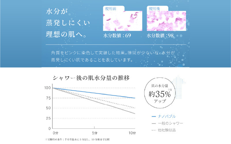 1ccあたり12億個以上のナノバブルが発生、自然な潤い美肌を体感できます。