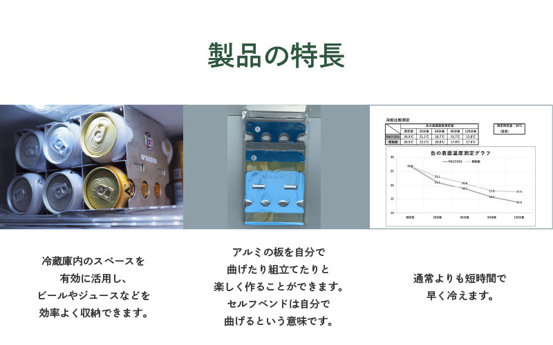 冷蔵庫内を有効活用し、ビールやジュースなどを効率よく収納し冷やすためのラック! RACCOOL(ラックール)- 冷蔵庫スペースを有効活用、速冷アルミラック