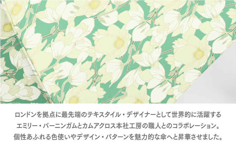 エミリーの個性あふれる色使いやデザイン・パターンを東大阪・カムアクロス本社工房の職人が、魅力的な傘へと昇華させました。