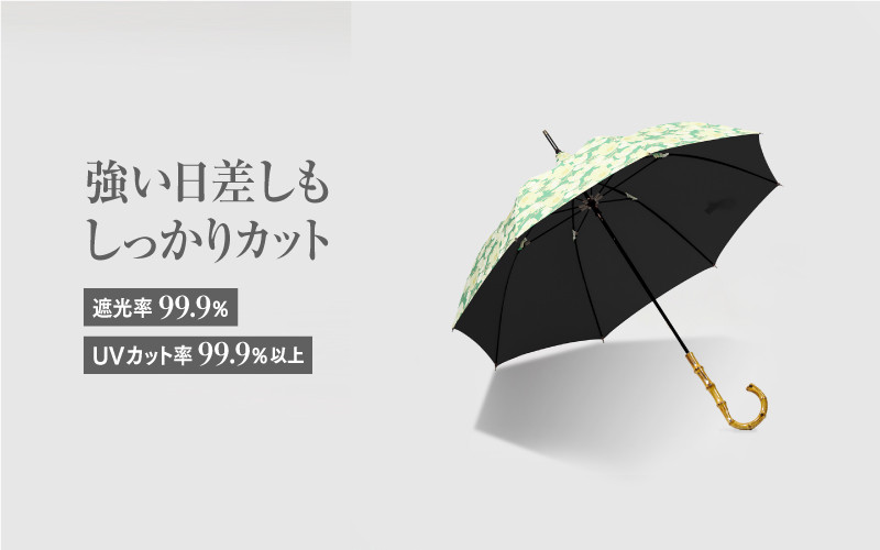 遮光率99.9%、UVカット率99%以上で強い日差しもしっかりカットしてくれる晴雨兼用傘。