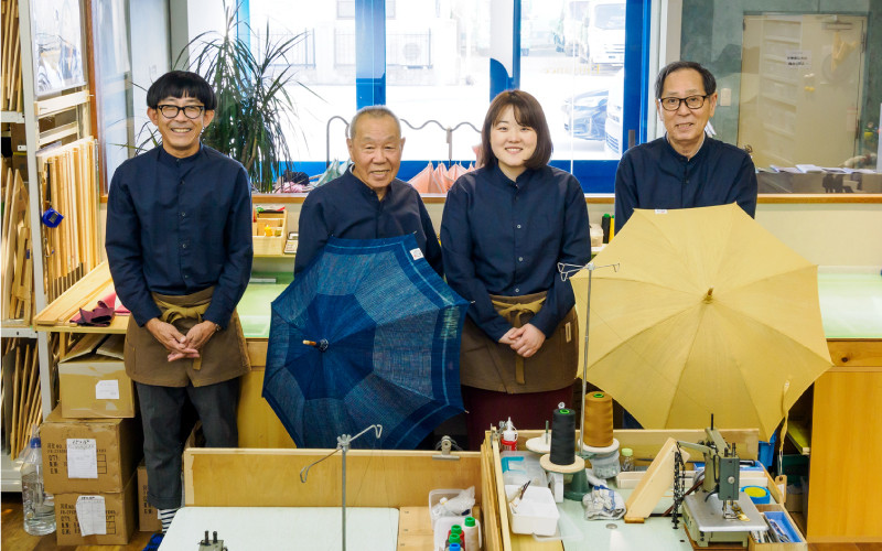東大阪の傘工房では、なにわの名工(大阪府優秀技能者表彰)に選ばれた二人の傘職人を中心に、伝統的な技法による傘づくりを行っています。