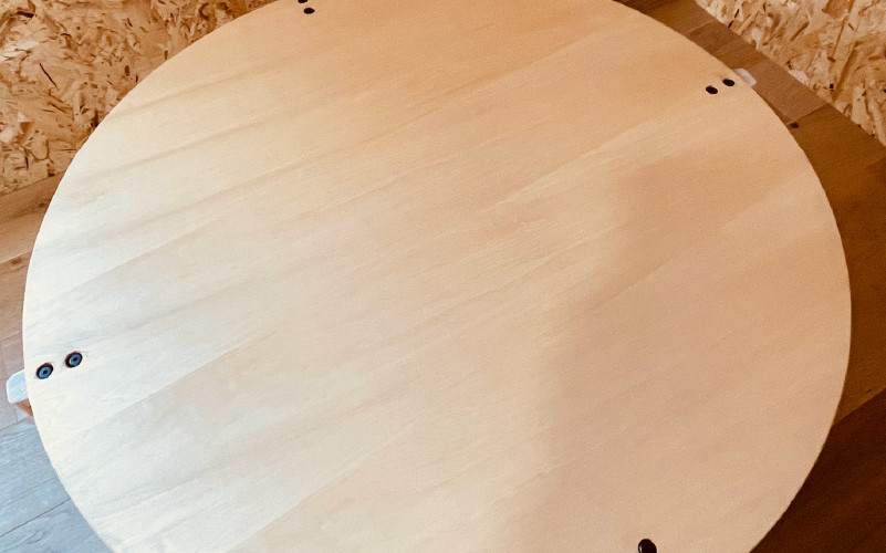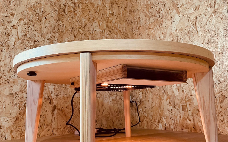 東大阪市の無垢の木工房がお届けする本物志向! 【無垢の木の職人が作る】ヘリンボーン柄・吉野ヒノキを使用したこたつ(直径90cm) - くつろぎ時間をより特別なものに