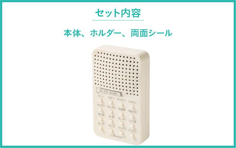 インターホンや電話越しにボタンを押すだけで、全16種類の音声から適切なフレーズを選び、相手に伝えることができます。