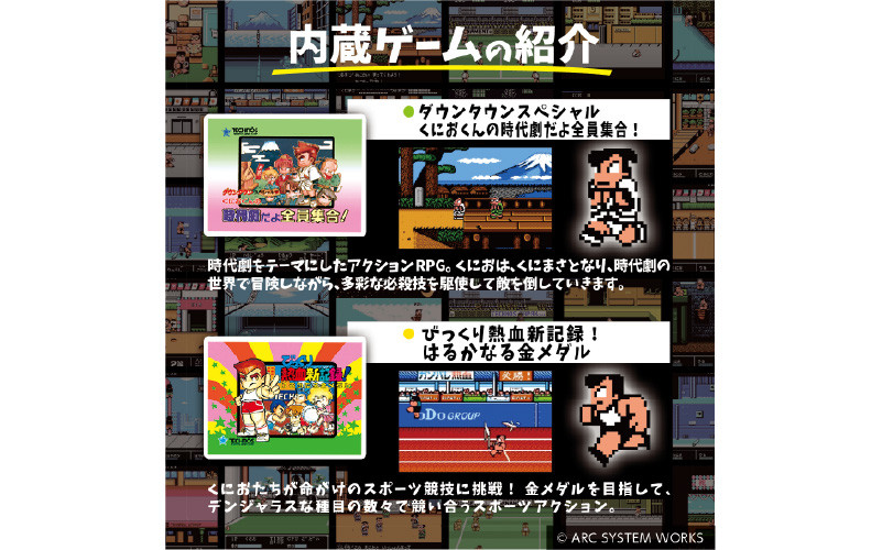 内蔵された5タイトルは、「ダウンタウン熱血物語」、「熱血高校ドッジボール部」、「ダウンタウンスペシャル くにおくんの時代劇だよ全員集合!」「びっくり熱血新記録!はるかなる金メダル」「ダウンタウン熱血行進曲 それゆけ大運動会」。