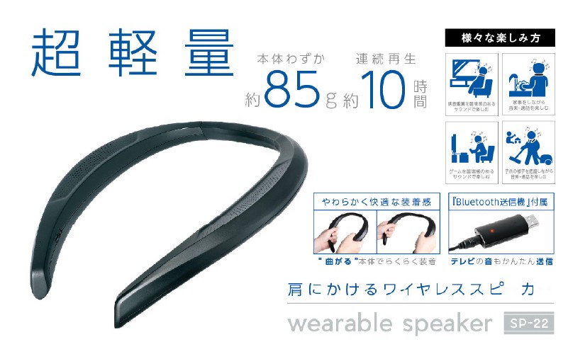 超軽量!わずか約85gの肩にかけるワイヤレススピーカー ウェアラブルスピーカー SP-22