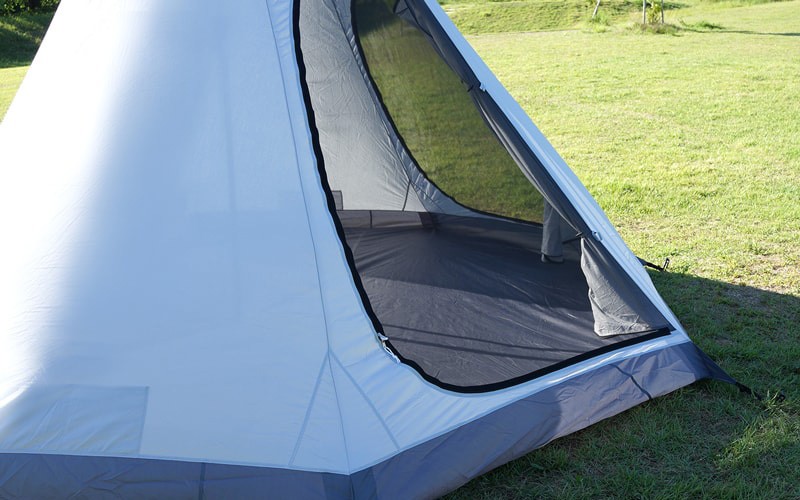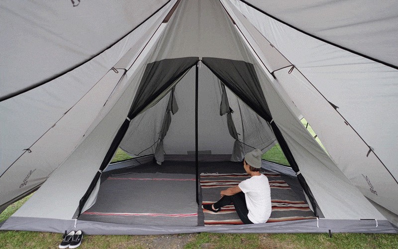 リビングを備えたオールシーズン使える2ルームワンポールテント。