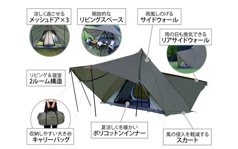 リビングを備えたオールシーズン使える2ルームワンポールテント。 【DOD】ヤドカリテント