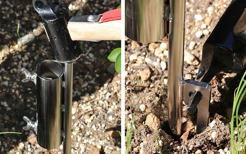 テント用のペグのようにハンマーで打ち込む形状のため、力がなくても簡単に打ち込むことができます。