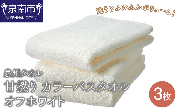 【泉州タオル】甘撚り カラーバスタオル オフホワイト3枚【039D-194】