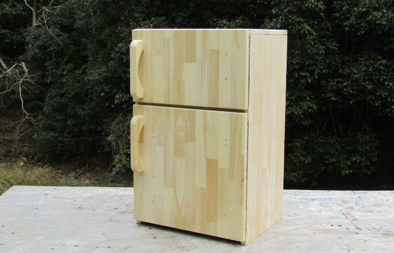 「手作り木製収納メインの大型冷蔵庫」よりひと回り小ぶりなものを作ってほしいと、保育園様からご依頼いただき、この中型冷蔵庫が誕生いたしました!