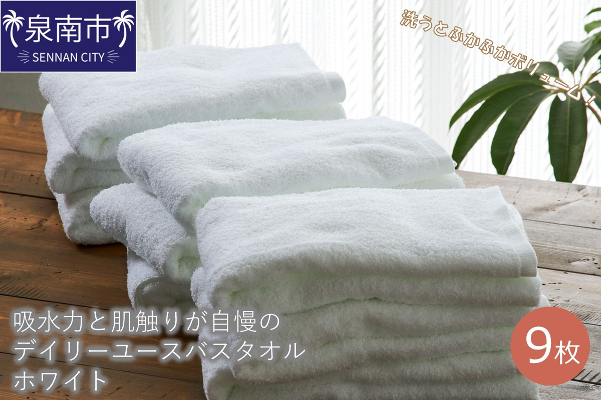 伝統の後晒し製法により仕上げられるタオルは、肌触りの良さと高い吸水性が特徴です 【泉州タオル】吸水力と肌触りが自慢のデイリーユースバスタオル ホワイト 9枚 タオル バスタオル 泉州タオル【039D-238】
