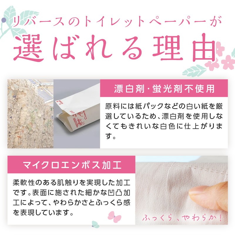 物価高騰が続く中、コスパが良い大容量であるリバースのトイレットペーパー。