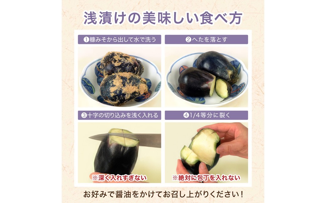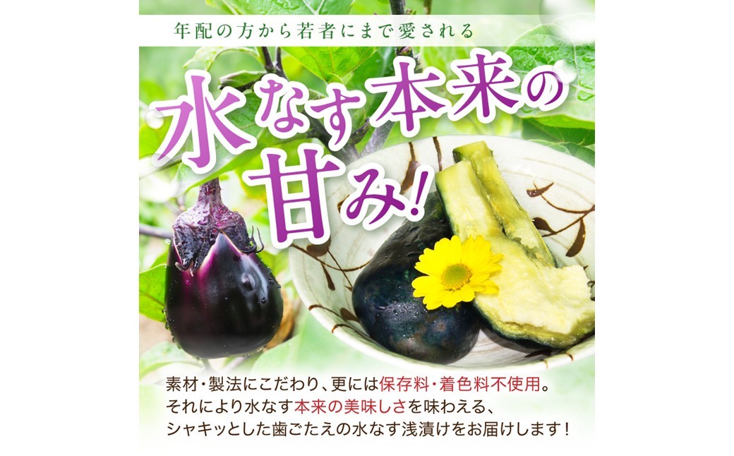 すぐにご賞味いただける漬かり具合の水なすを入れております。