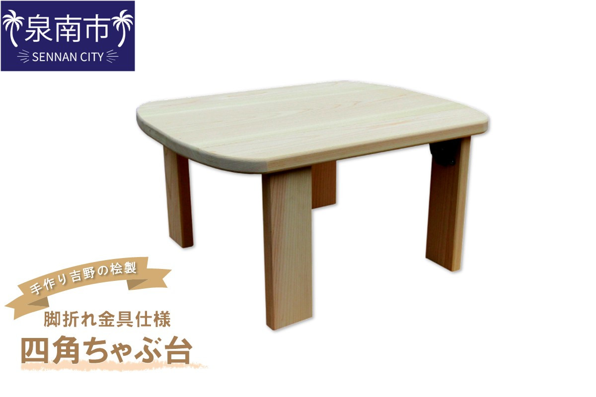 手作り吉野の桧製 四角ちゃぶ台 脚折れ金具仕様【007A-061】