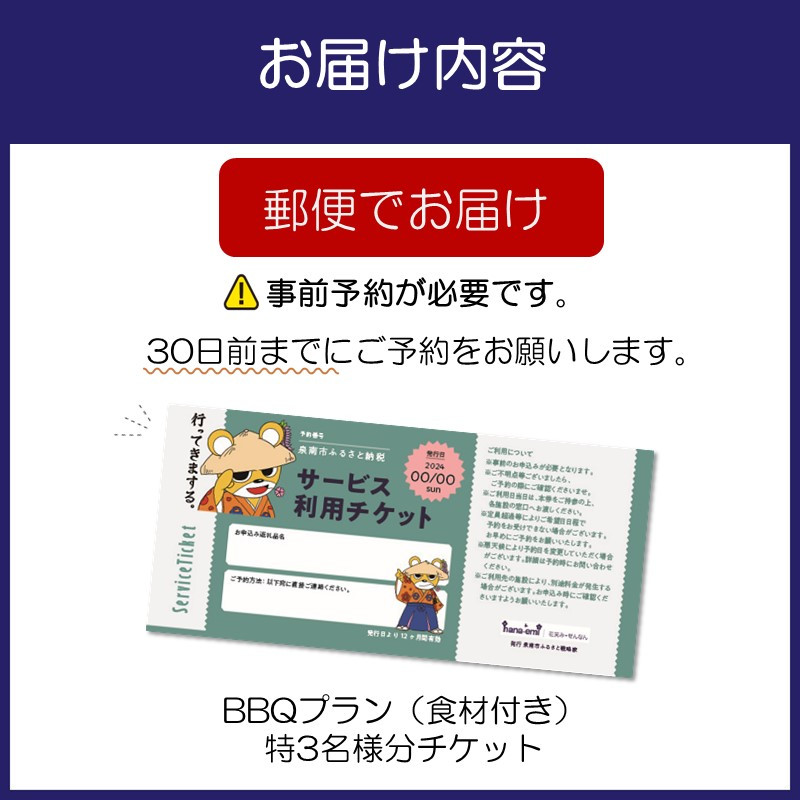 サザンぴあ屋上テラスBBQプラン(B-2)特3名様分チケット【015B-001】