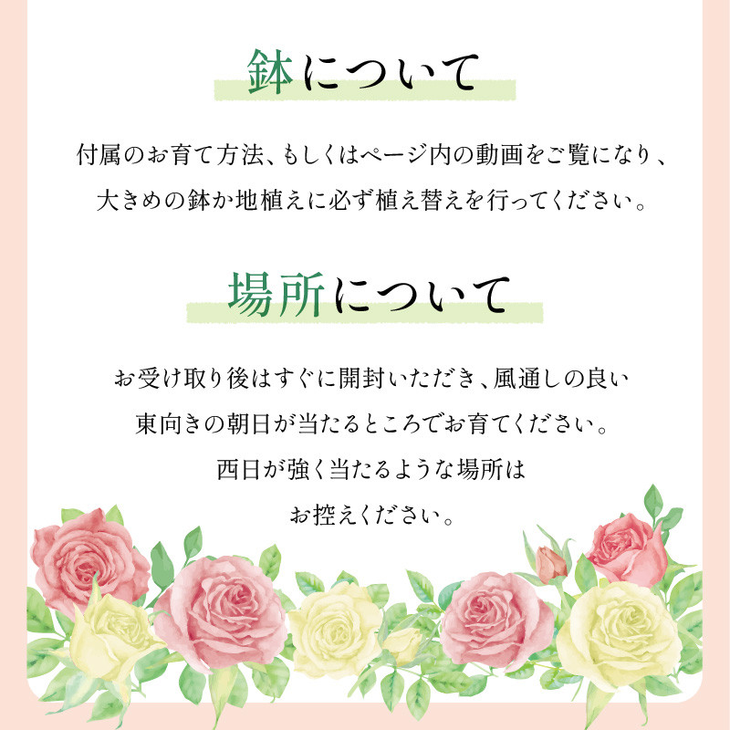 当社では1年補償をご用意しております。バラの生育状態が悪い、