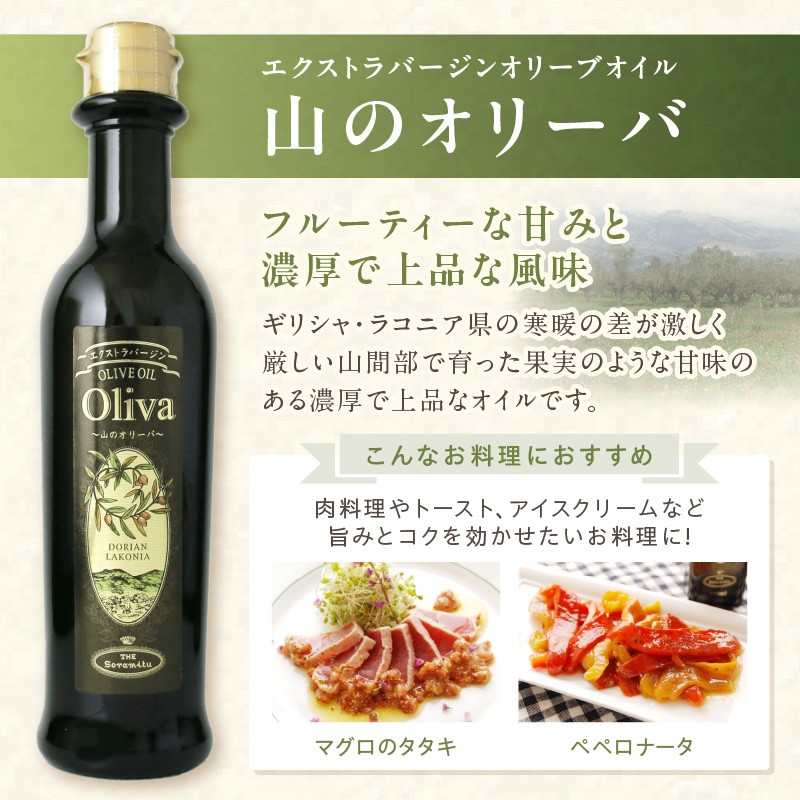 | 容量 | EXオリーブオイル 229g×12本(各種4本) 山のオリーバ 4本 海のオリーバ 4本 オリーバオーガニック 4本 ■原産地:ギリシャ ■加工地:国内 |