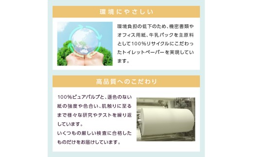 機密書類やオフィス古紙、牛乳パックを主原料とし100%リサイクルにこだわったトイレットペーパーです。