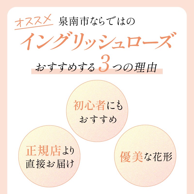 今回お送りする返礼品は、泉南市内花咲ファーム内にあるデビッドオースチン社直営ナーセリーにて育苗されたイングリッシュローズ6L鉢苗です。