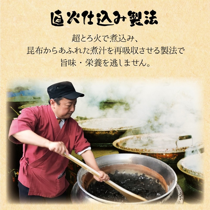 この発酵煮汁を加えて独自の「直火仕込製法」で旨みを残さず昆布に閉じ込めています。