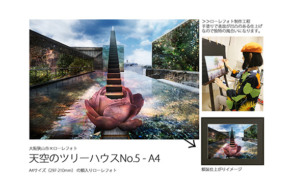 No.181 5-RA4 大阪狭山市×ローレフォト 天空のツリーハウス / 絵画 A4サイズ 実物作品 額入り 大阪府