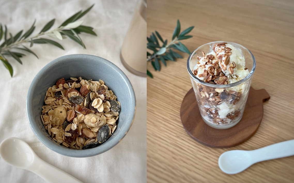 有機素材たっぷり、プレーンと珈琲の食べ比べを楽しむナッツグラノーラ