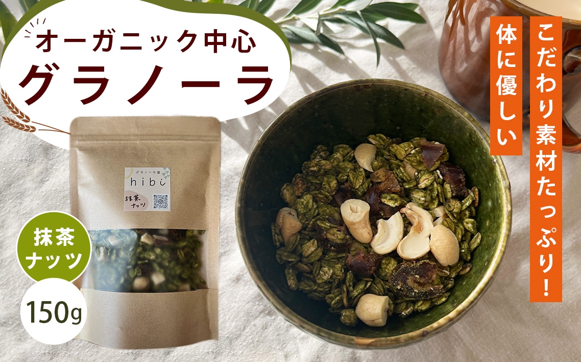 抹茶香る、有機素材たっぷりナッツグラノーラ グラノーラ 【抹茶ナッツ】オーガニック中心のこだわり素材たっぷり! 150g / 抹茶 ナッツ 和風 無添加 白砂糖不使用 朝食 ヨーグルトに合う 腹持ち 健康志向 置き換え朝食 ほろ苦い 甘さ控えめ 食物繊維 お試し 自然派食品 大阪府 No.360