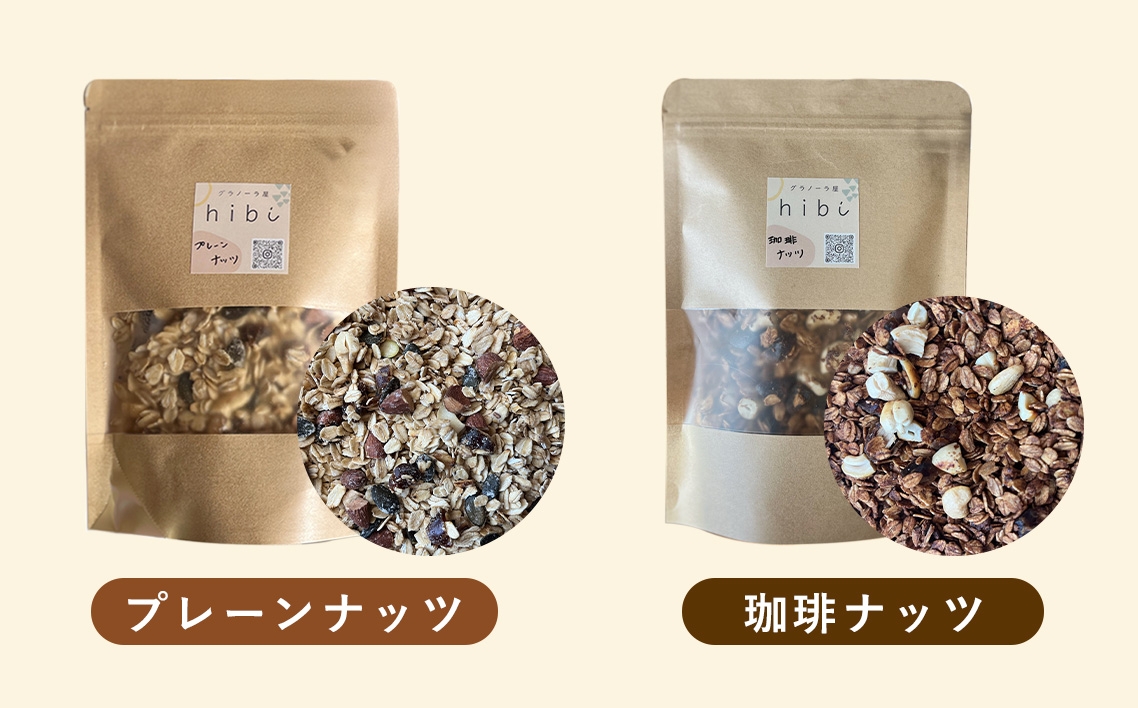 有機素材たっぷり、プレーンと珈琲の食べ比べを楽しむナッツグラノーラ