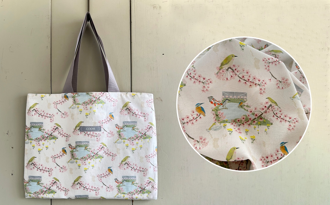 大阪狭山市を代表する最古のため池をモチーフにした柄~池はせる~を使用してエコバッグに仕立てました。