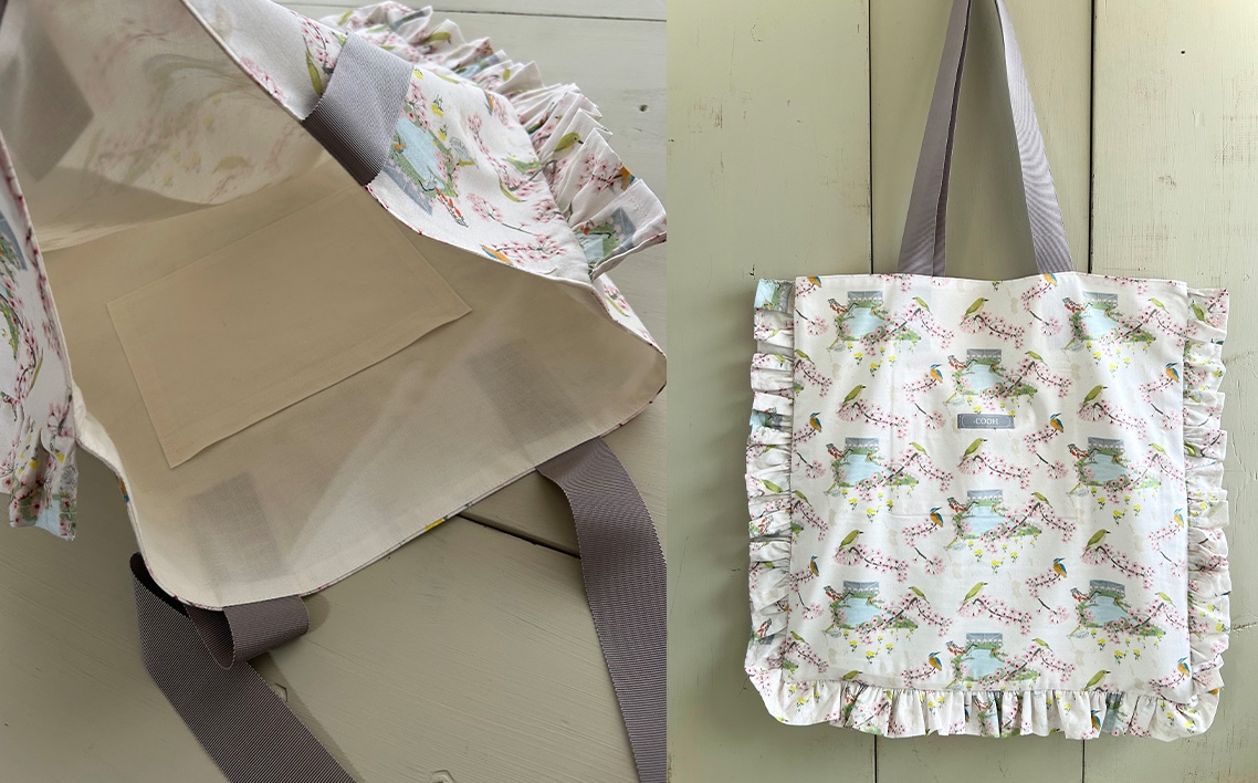 大阪狭山市を代表する最古のため池をモチーフにした柄~池はせる~を使用してトートバッグに仕立てました。