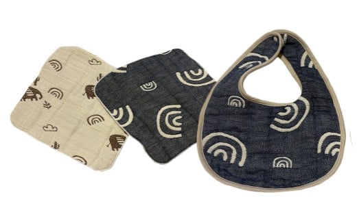 NEW 6重ガーゼ織スタイ ×1枚 (ネイビー) + 6重ガーゼ織ハンカチ …