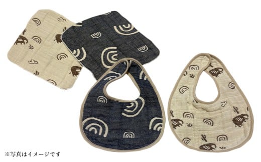NEW 6重ガーゼ織スタイ ×2枚 (ベージュ・ネイビー) + 6重ガーゼ…