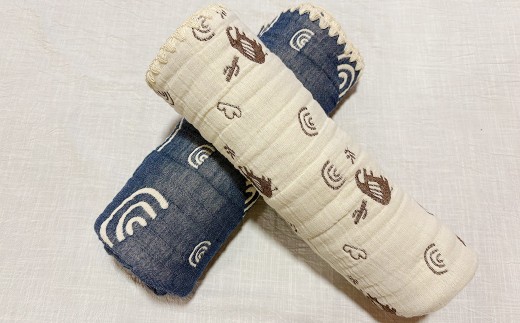 NEW 6重ガーゼ織スタイ ×2枚 (ベージュ・ネイビー) + 6重ガーゼ…