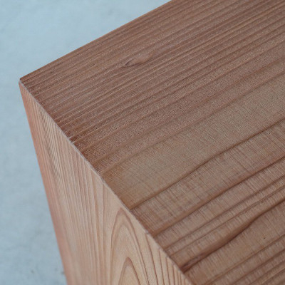 樹齢200年以上の希少な天然杉の板を表面に貼り合わせ、シンプルな仕上げに。