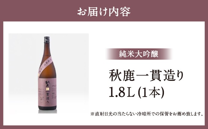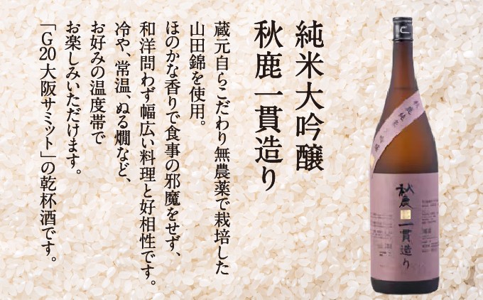 《純米大吟醸》 秋鹿 一貫造り 1本 (1.8L×1) | 秋鹿酒造株式会社 | お酒 日本酒 辛口 アキシカ 飲み比べ セット 酒 国産 地酒 蔵元直送 晩酌 ギフト | 大阪府 能勢町 送料無料