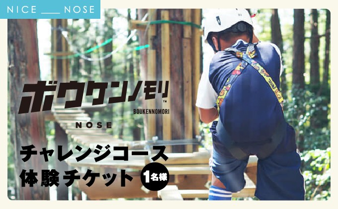 ボウケンノモリNOSE チャレンジコース体験チケット 1名様 | アスレチック レジャー アウトドア アクティビテ 自然 | 5歳から 身長110cm以上 初心者向け 親子同伴 | お出かけ 家族旅行 夏休み GW | 大阪府 能勢町 送料無料