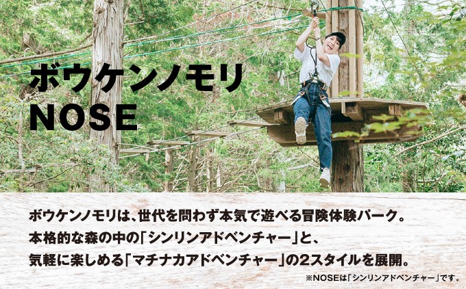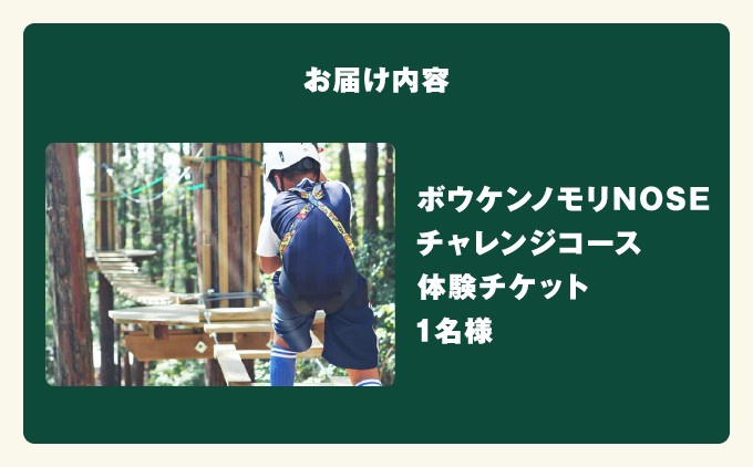 | 容量 | ボウケンノモリNOSE チャレンジコース1名様体験チケット 1枚 |
