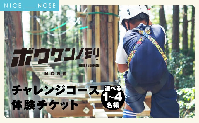 | 容量 | ボウケンノモリNOSE チャレンジコース 選べる人数 1~4名様 体験チケット 1枚 |
