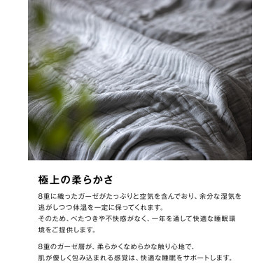 ガーゼ8層が重ね織りされてできています。その為空気を含みふんわりとしているため肌触りも抜群です。